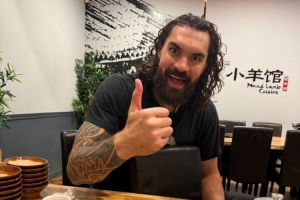 媒体人晒与亚当斯一起吃夜宵的照片:赛后吃夜宵 羊肉串烧烤走起